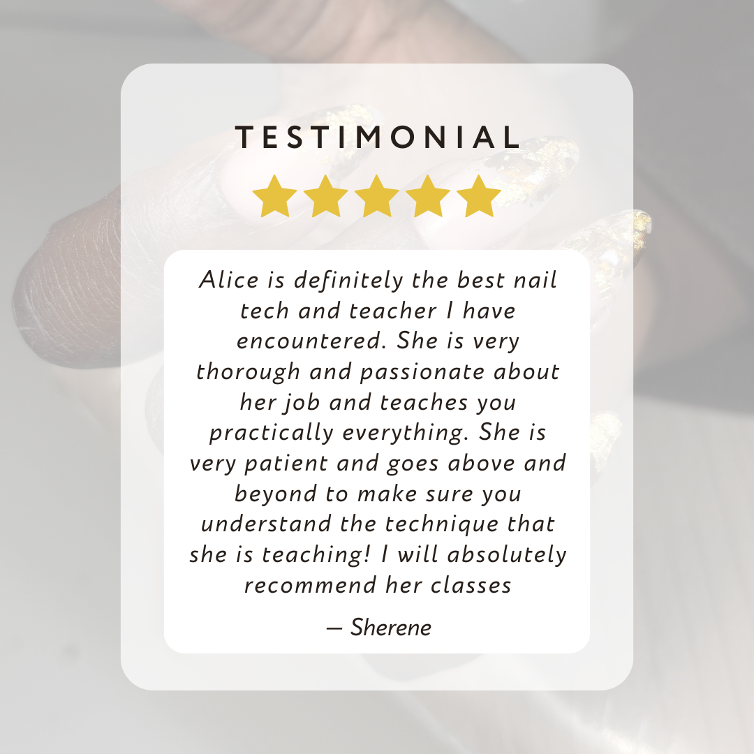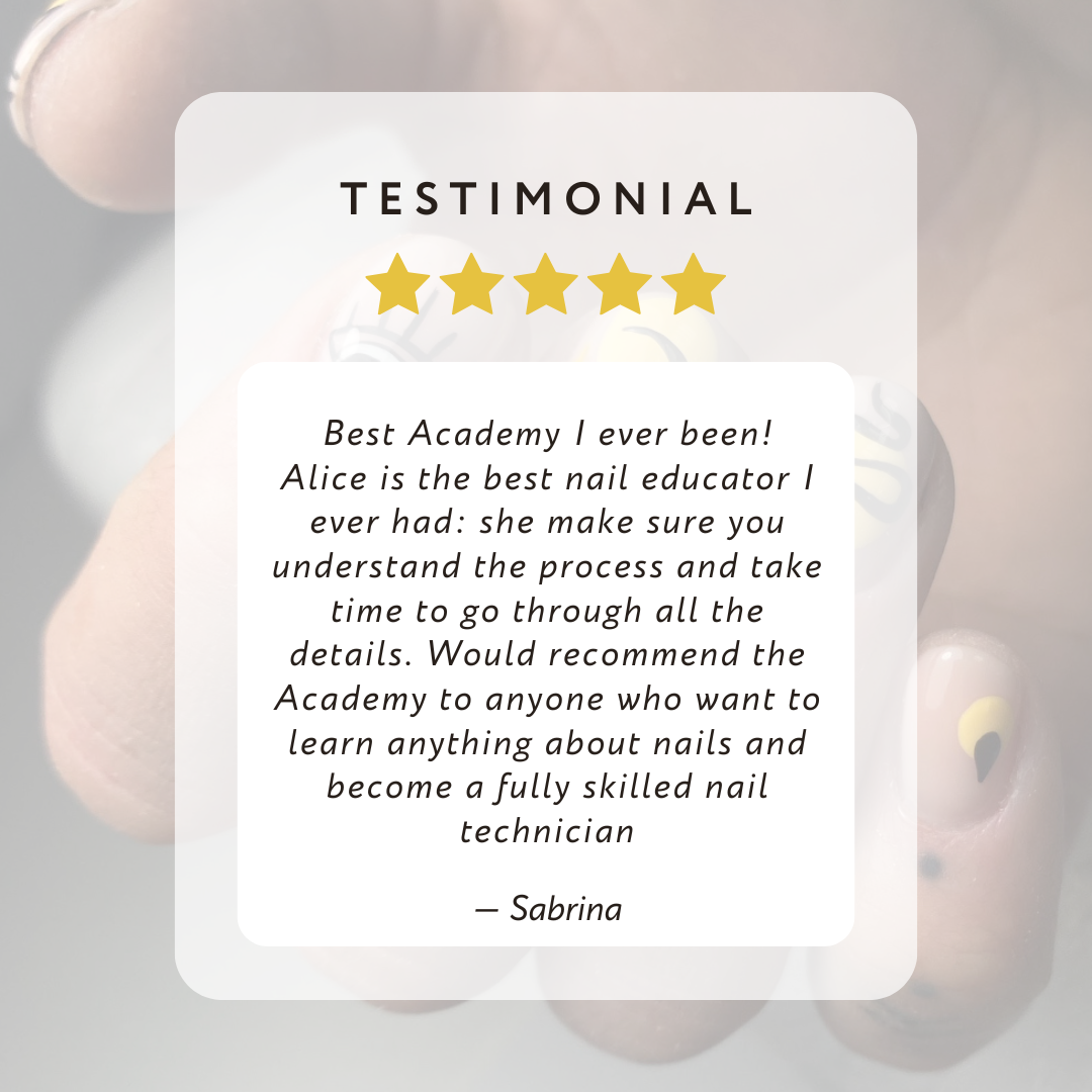 Founded in 2016 and now based in London, AlyNails Academy is dedicated to empowering aspiring nail professionals through high-quality training and creative excellence.